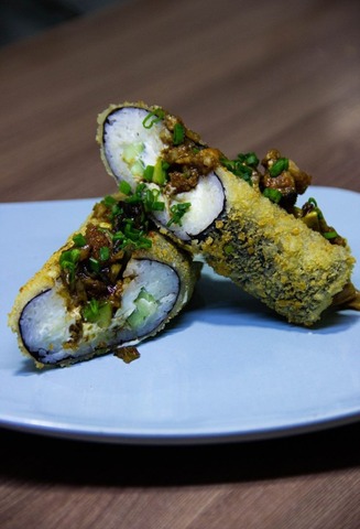 сыр, огурец, креветка в кляре, авокадо, соус чесночный, криспи лук
