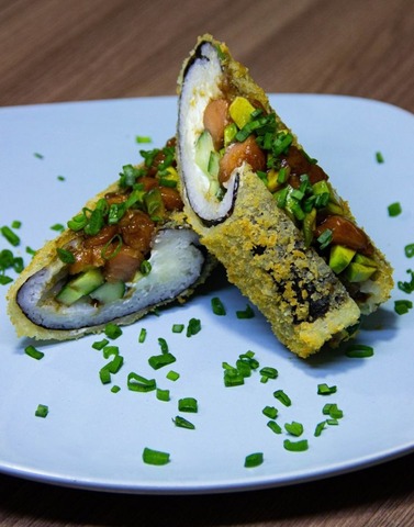 сыр, огурец, лосось, авокадо, соус фирменный, криспи лук