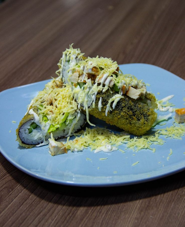 сыр, огурец, курица, листья салата, соус цезарь, пармезан